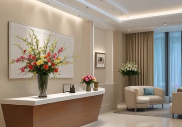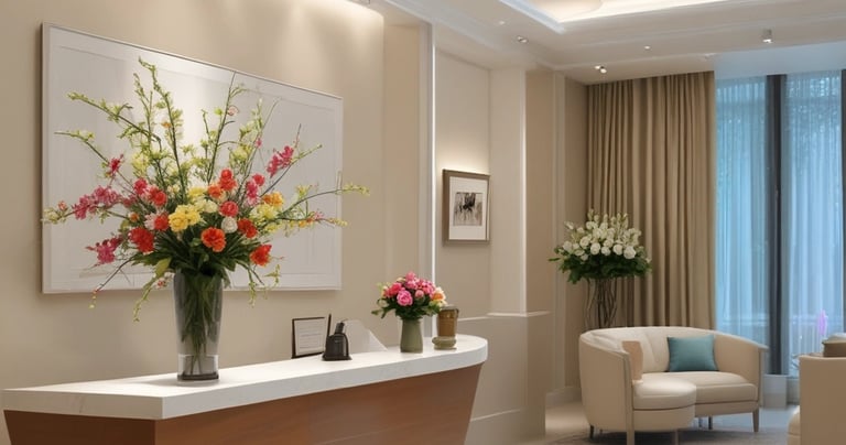 - cyklicznie wymieniane kompozycje z kwiatów ciętych np. na ladę recepcji,
